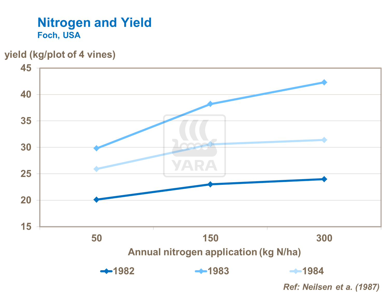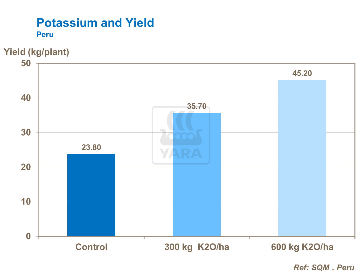 钾在整个生长周期的需求量都很大,尤其在葡萄积累糖分的果实膨大期。在智利葡萄试验中,与未施钾肥的葡萄相比,极高的施钾量(600kg/ha)使产量几乎翻了一倍。